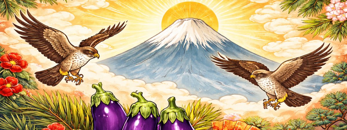 初夢の縁起物として知られる「一富士二鷹三茄子」。